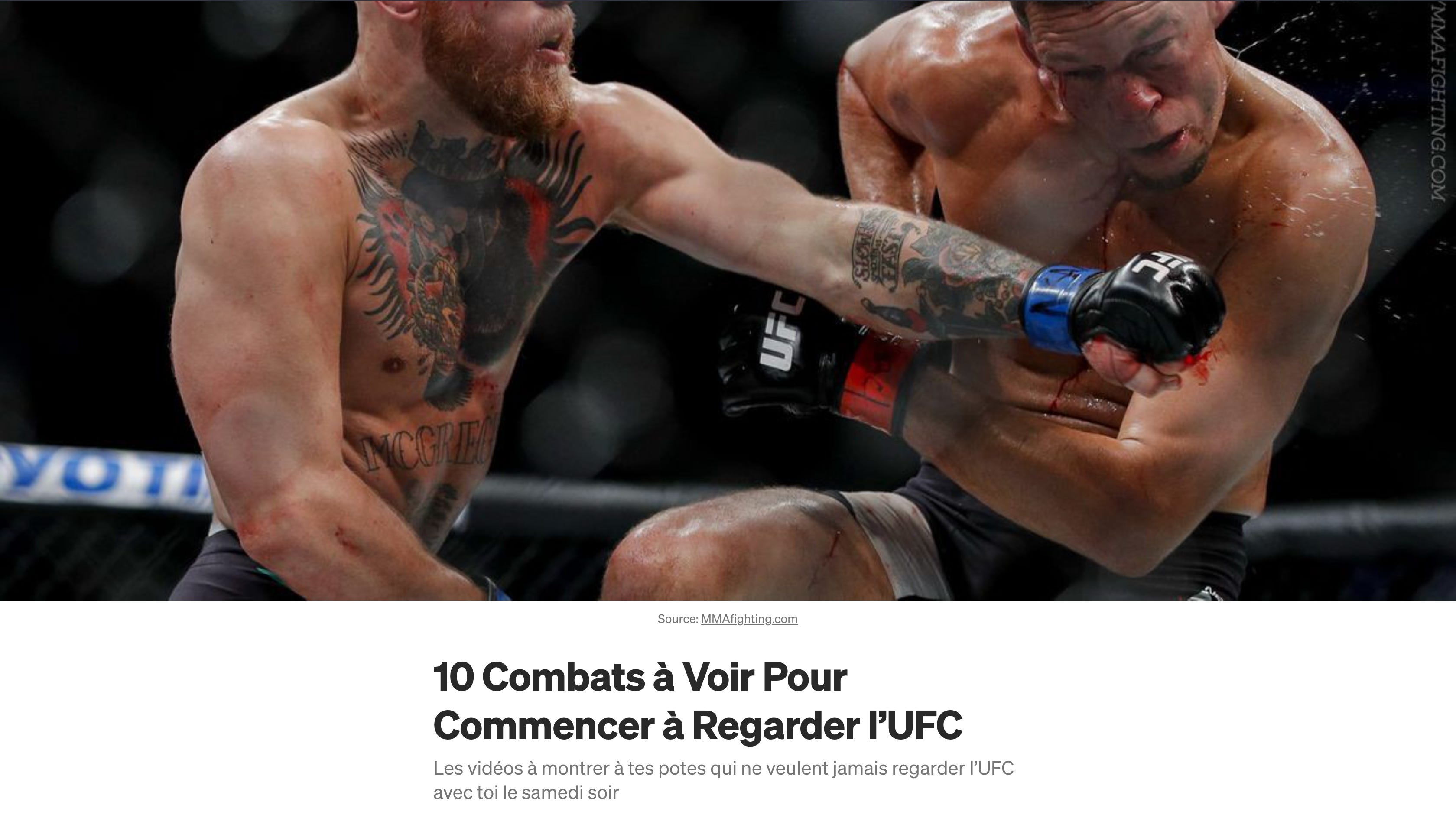 J'en ai écrit un article sur le blog, avec les 10 meilleurs combats à montrer à tes potes qui ne veulent pas rester debout pour regarder l'UFC avec toi le samedi soir, vidéos à l'appui.